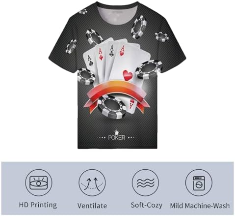 Introducing the Men’s 3D Novelty T-Shirt featuring a unique display of spread chips with poker cards lifestyle design. Made from high-quality materials, this t-shirt is comfortable and stylish, perfect for casual outings or poker nights with friends. The 3D print on the front of the shirt adds an eye-catching and fun element that is sure to stand out in a crowd. Whether you’re a poker enthusiast or just love a playful and bold look, this novelty t-shirt is a must-have addition to your wardrobe. Available in a range of sizes, this shirt is perfect for any man looking to add a touch of personality to his outfit. Upgrade your style game with the Men’s 3D Novelty T-Shirt today!